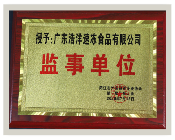 2020,浩洋食品”授予“監(jiān)事單位”。
